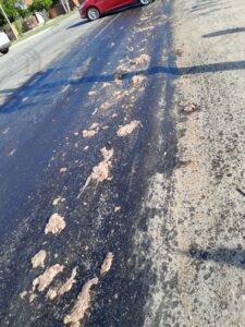 Los Bomberos trabajaron con una dotación en el barrido hidráulico y juntaron los desperdicios que había derramado. Colaboraron inspectores de tránsito y maestranza para el traslado de los mismos.