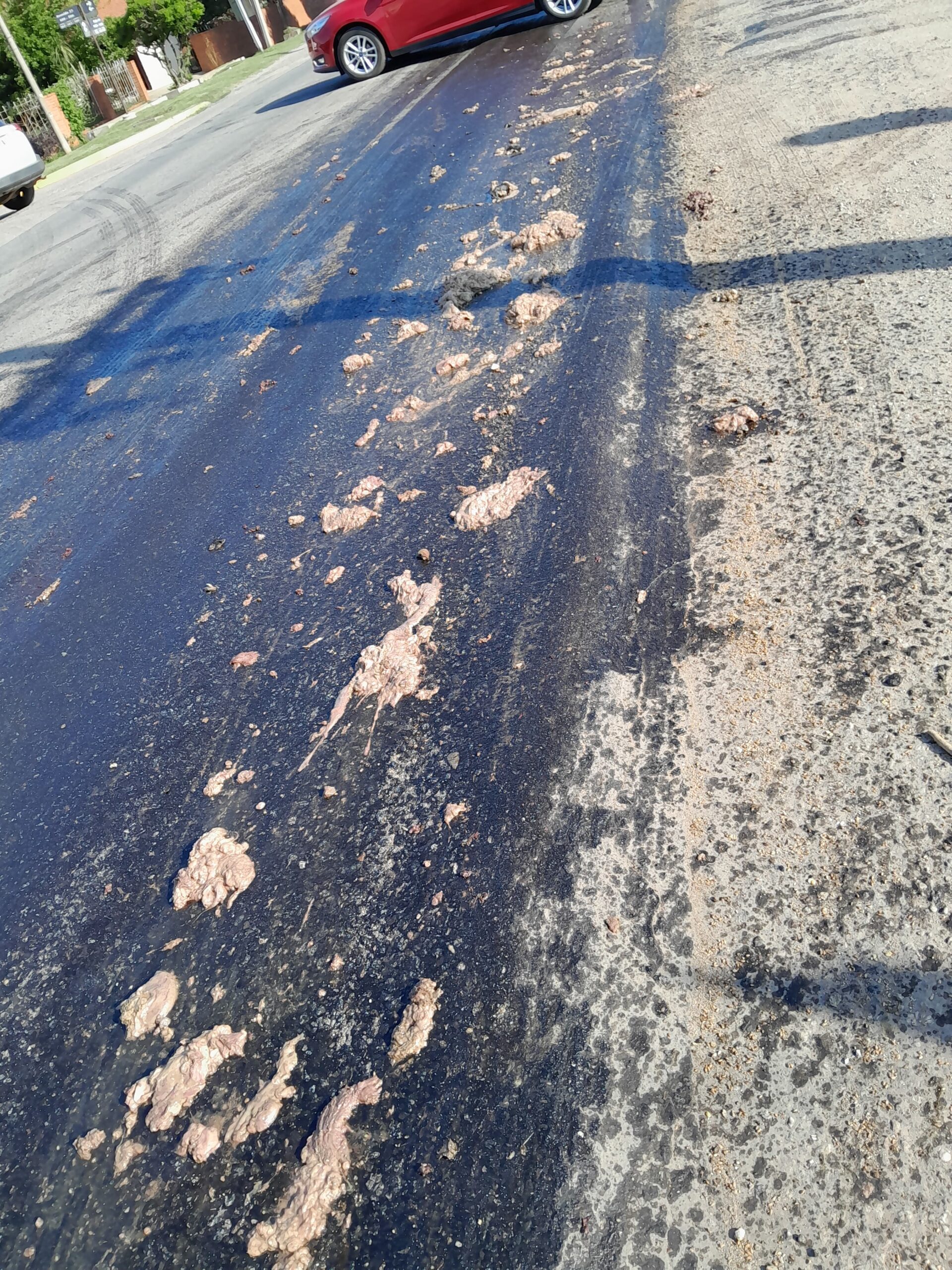 En la tarde de este jueves, 17:30 hs. los Bomberos Voluntarios de Las Parejas fueron convocados a ruta 178 entre avenida 13 y 21 porque un camión volcó carga de tripas y desperdicios de la faena de animales mientras marchaba.