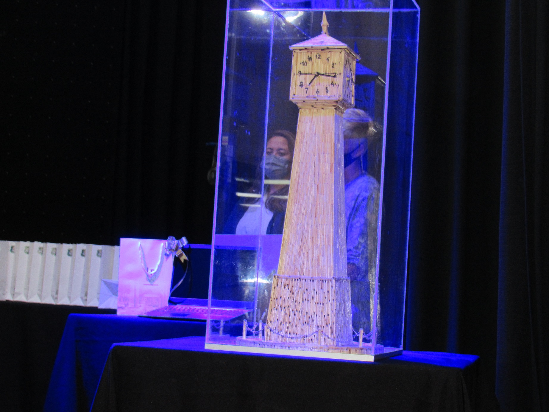 Además, presentaron el maravilloso trabajo en fosforomodelismo representando el tradicional reloj que se encuentra ubicado en calle 20 y avenida 21 realizado por el artesano local Juan José Montechiani y que se podrá observar en el Hall de Casa del Bicentenario.