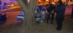 Según información brindada por el Centro de Operaciones, un vehículo habría tenido un desperfecto mecánico e impactó contra un árbol en la parte oeste de la avenida 18, contra la cerealera.